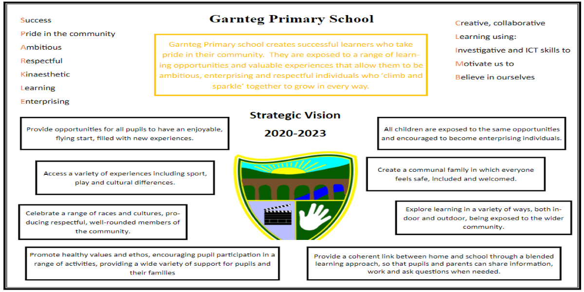 Garnteg Primary school creates successful learners who take pride in their community. They are exposed to a range of learning opportunities and valuable experiences that allow them to be ambitious, enterprising and respectful individuals who ‘Climb to Sparkle’ together to grow in every way.